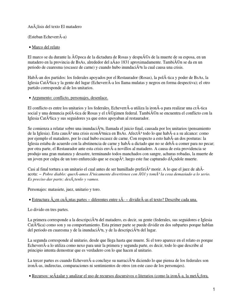 La primera corresponde a la descripción del matadero, es decir, su gente (federales, sus seguidores e Iglesia