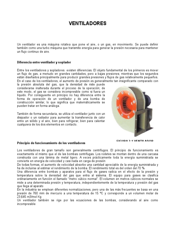 Entre los ventiladores y sopladores existen diferencias. El objeto fundamental de los primeros es mover