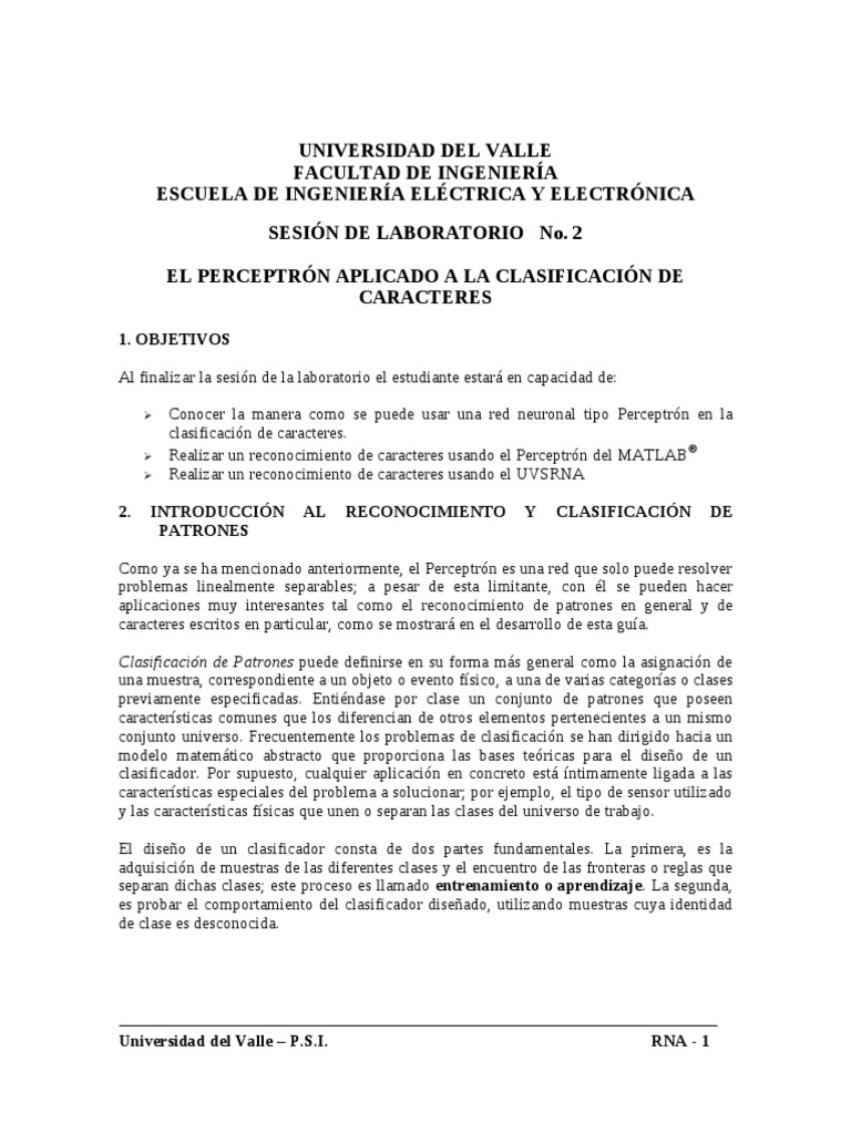 Universidad del Valle – P.S.I. RNA - 1