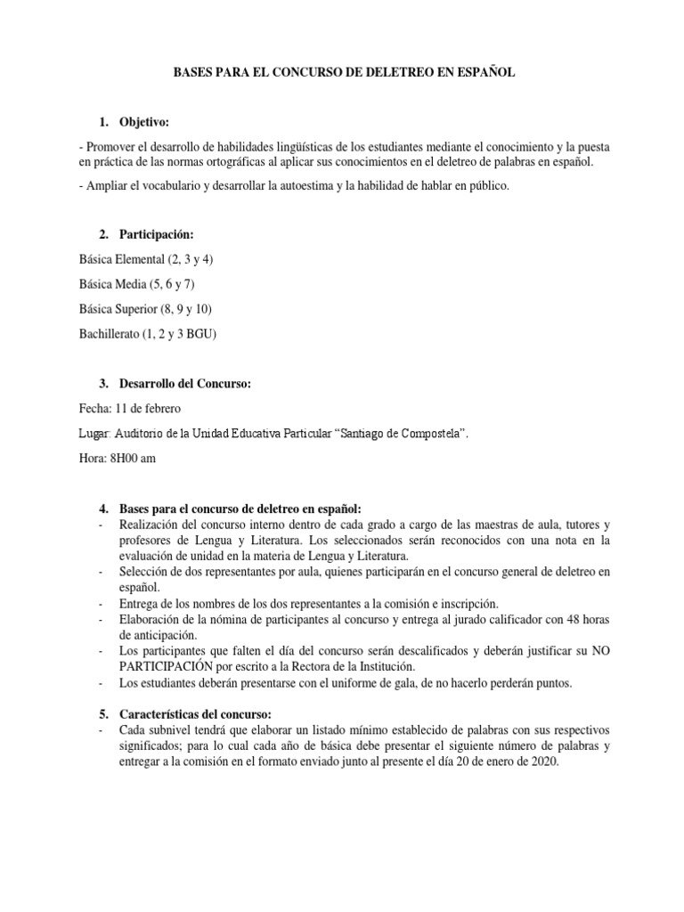 BASES PARA EL CONCURSO DE DELETREO EN ESPAÑOL