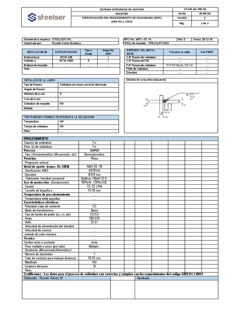 Nombre de la empresa: STEELSER SAC WPS No.: WPS –ST-14 Rev: 0 Fecha: 28-12-19