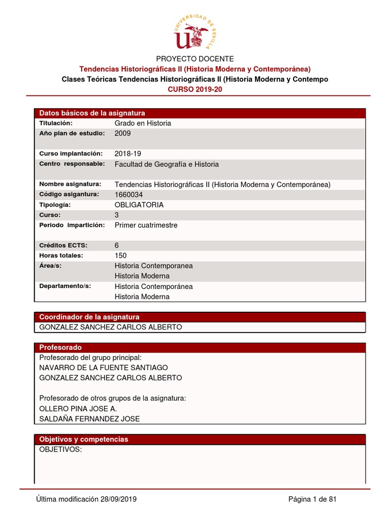 Nombre asignatura: Tendencias Historiográficas II (Historia Moderna y Contemporánea)