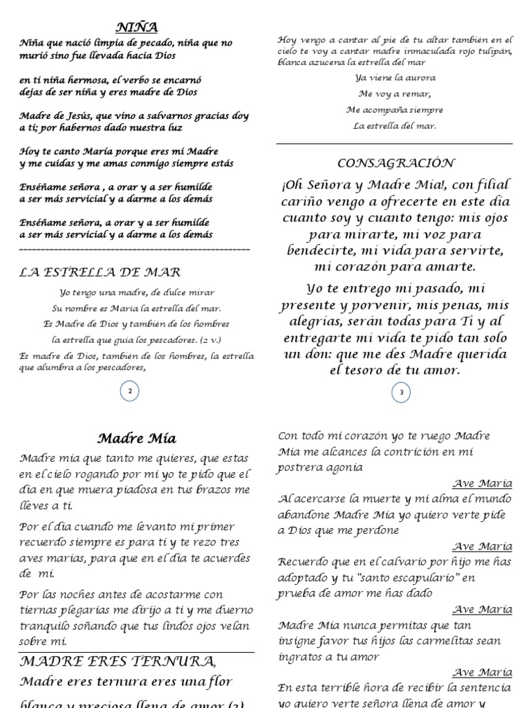 Su nombre es María la estrella del mar. presente y porvenir, mis penas, mis