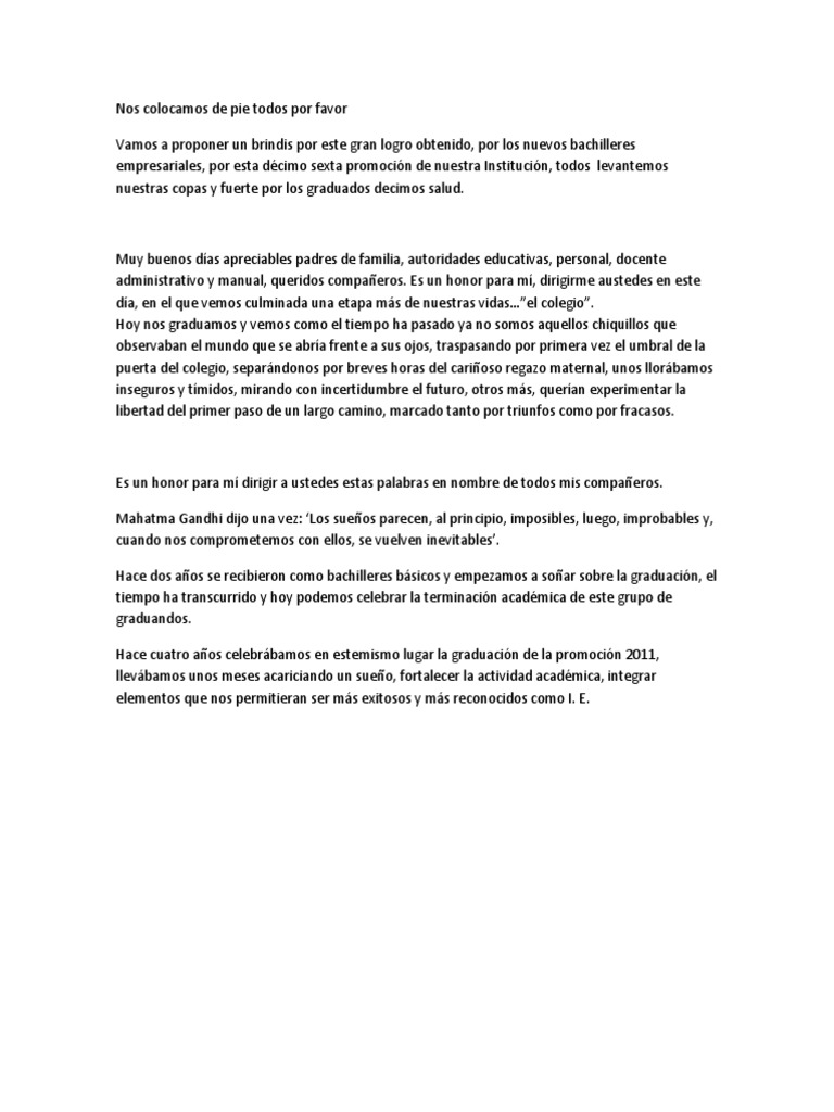 empresariales, por esta décimo sexta promoción de nuestra Institución, todos levantemos