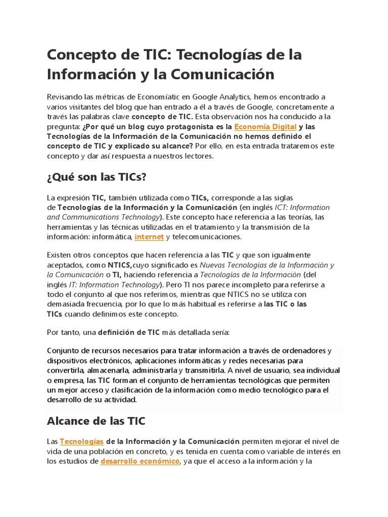 concepto de TIC y explicado su alcance? Por ello, en esta entrada trataremos este