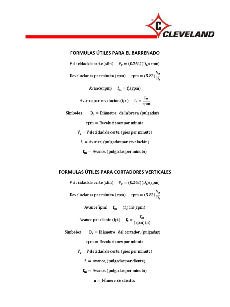Simbolos Dt = Diámetro del cortador, (pulgadas)