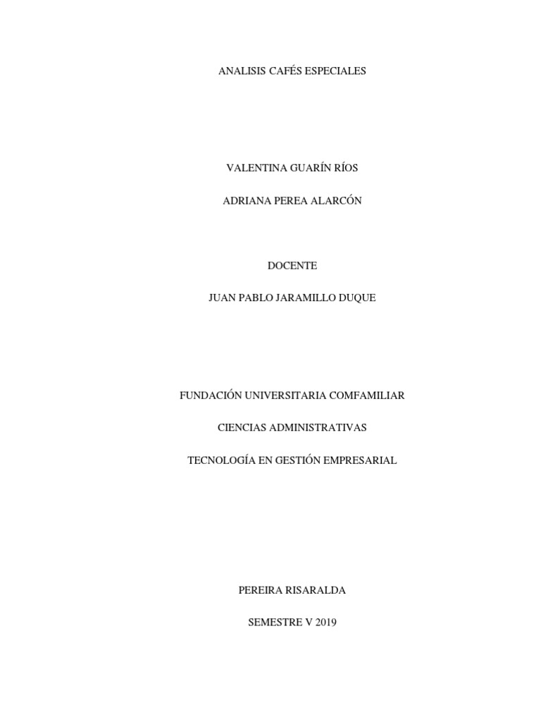 ANALISIS MATRIZ PEEA CAFÉS ESPECIALES