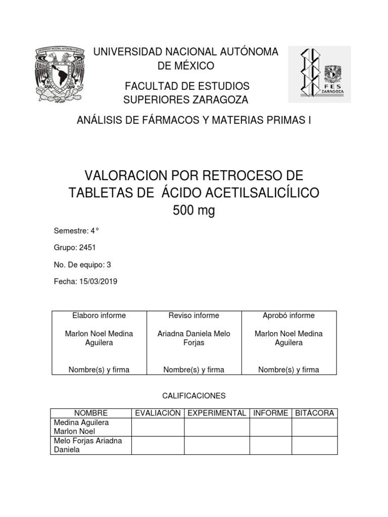 Por ultimo en la valoración de la aspirina se obtuvo un % de contenido de