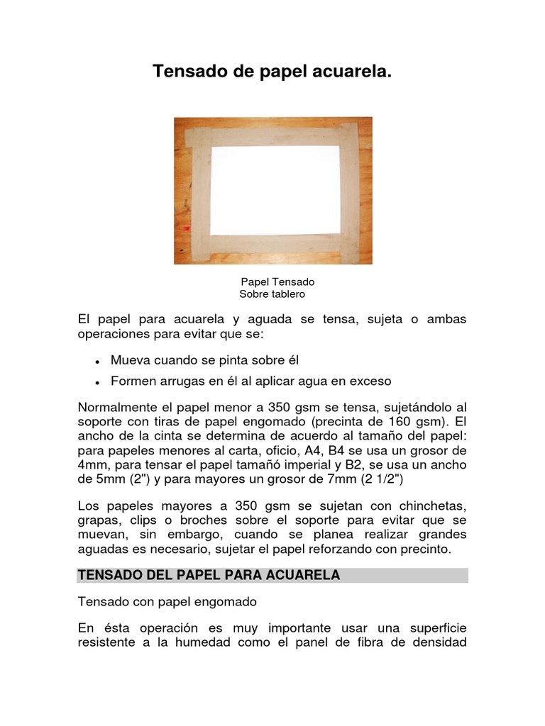El papel para acuarela y aguada se tensa, sujeta o ambas