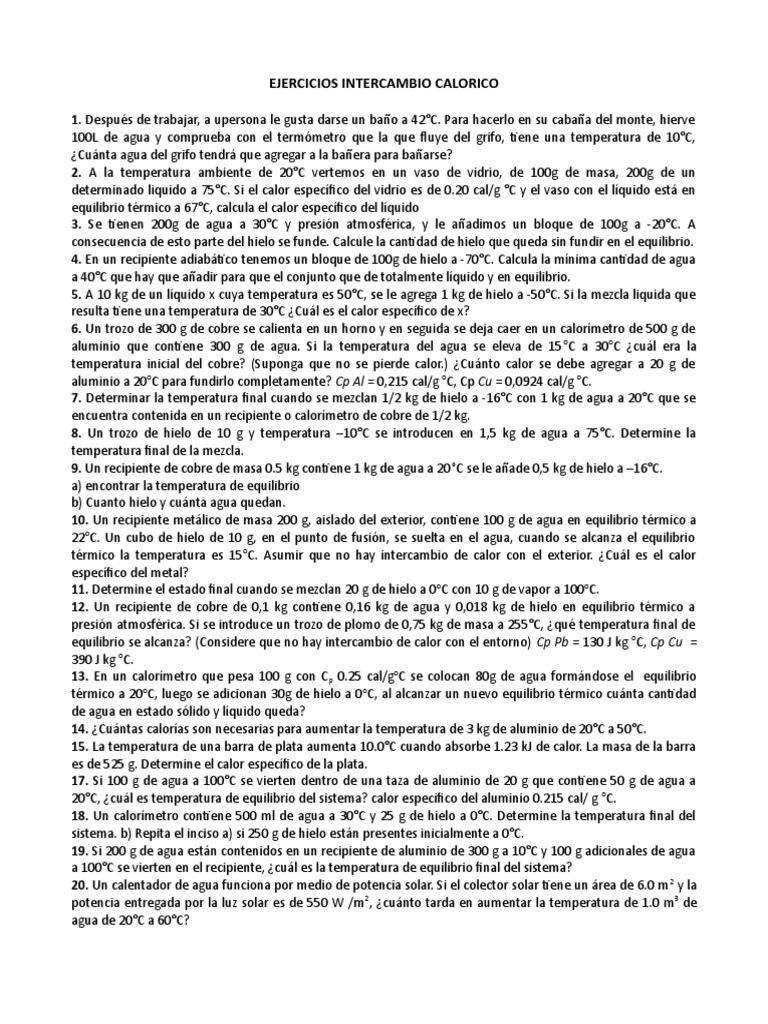 9. Un recipiente de cobre de masa 0.5 kg contiene 1 kg de agua a 20°C se le añade 0,5 kg de hielo a –16°C.