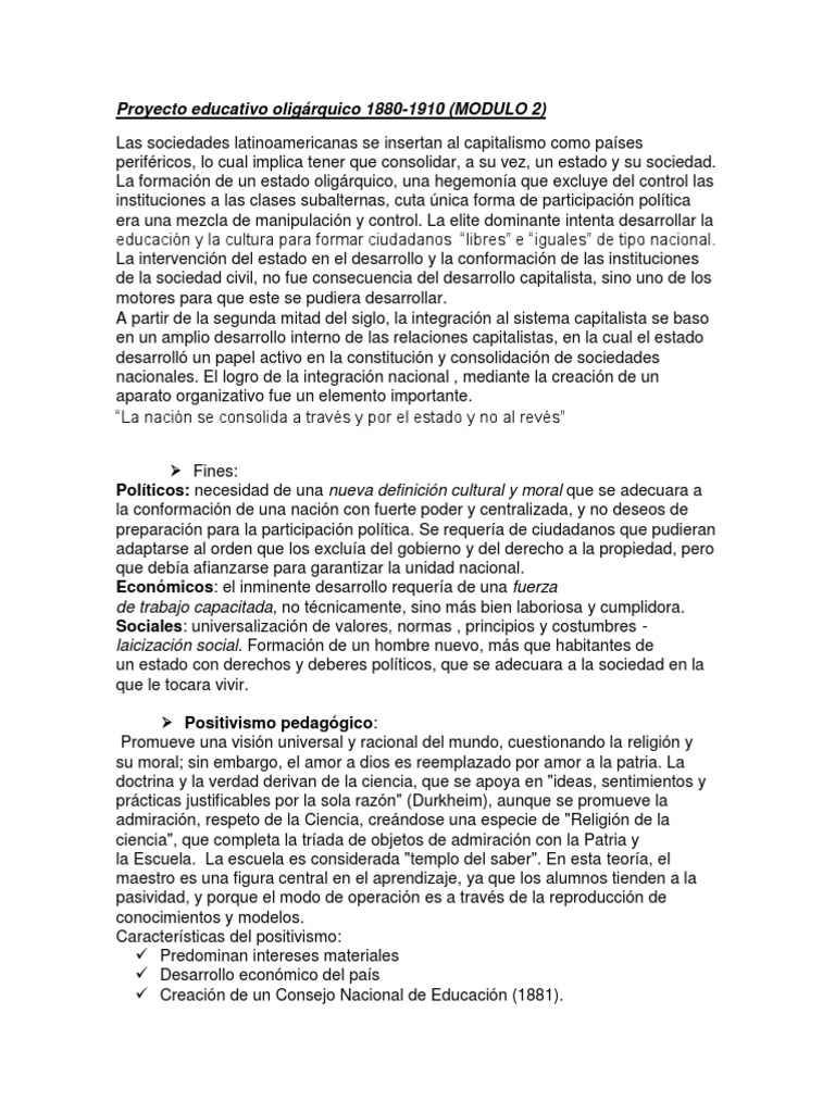 Proyecto educativo oligárquico 1880-1910 (MODULO 2)