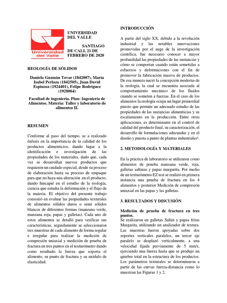 Alimentos. Materia: Taller y laboratorio de alimentos la reología ocupa un lugar primordial