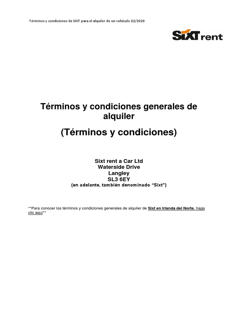 **Para conocer los términos y condiciones generales de alquiler de Sixt en Irlanda del Norte, haga