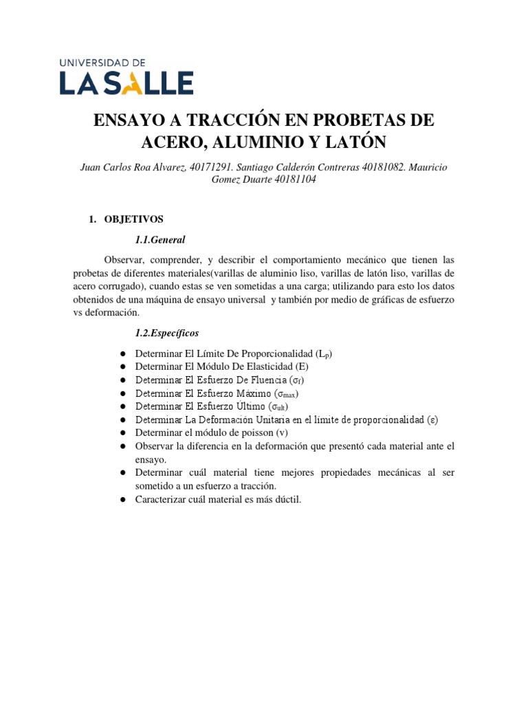 obtenidos de una máquina de ensayo universal y también por medio de gráficas de esfuerzo