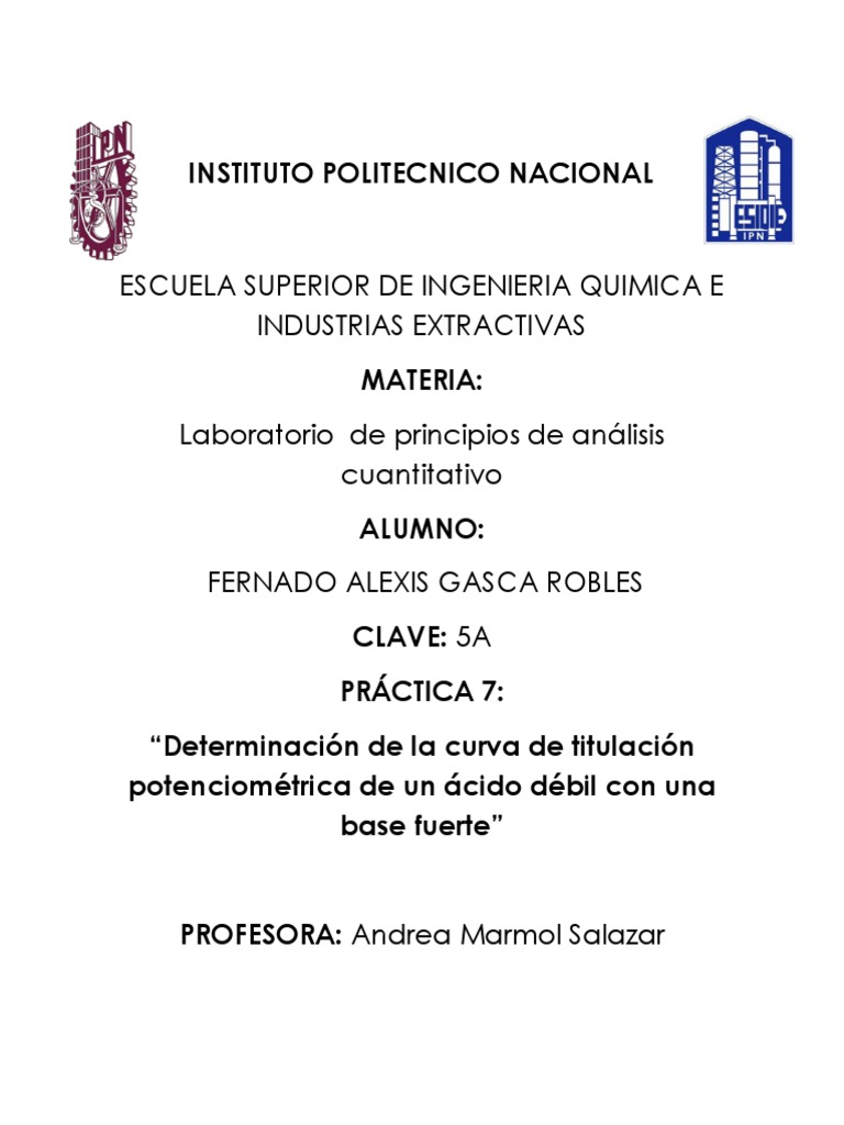“Determinación de la curva de titulación potenciométrica de un ácido