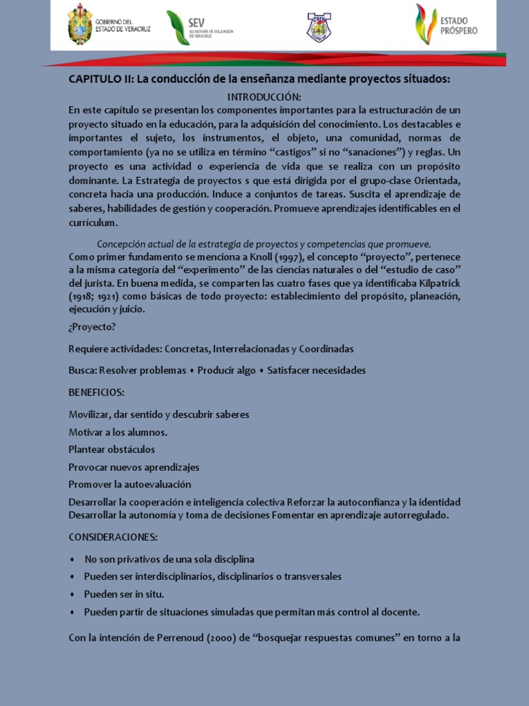 CAPITULO II: La conducción de la enseñanza mediante proyectos situados: