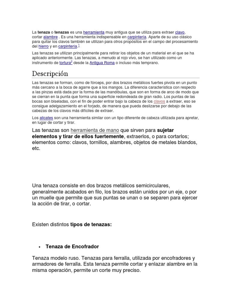 cortar alambre . Es una herramienta indispensable en carpintería. Aparte de su uso clásico