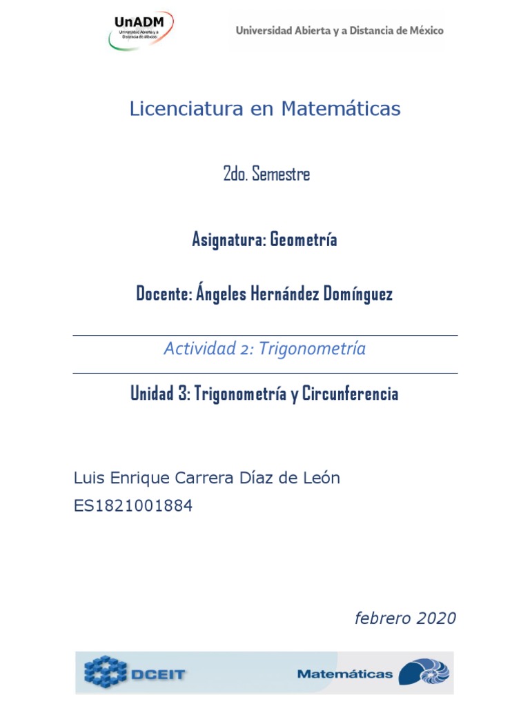 UnADM (s. f.) Trigonometría y Circunferencia. Recuperado el 26 de febrero de 2020
