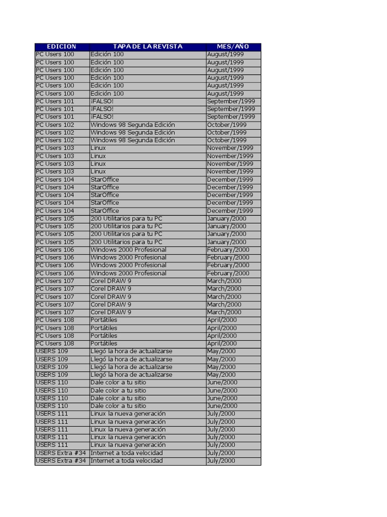 PC Users: desde el número 100 (Agosto/1999) hasta el número 108 (Abril/2000)