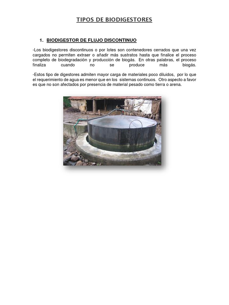 1. BIODIGESTOR DE FLUJO DISCONTINUO