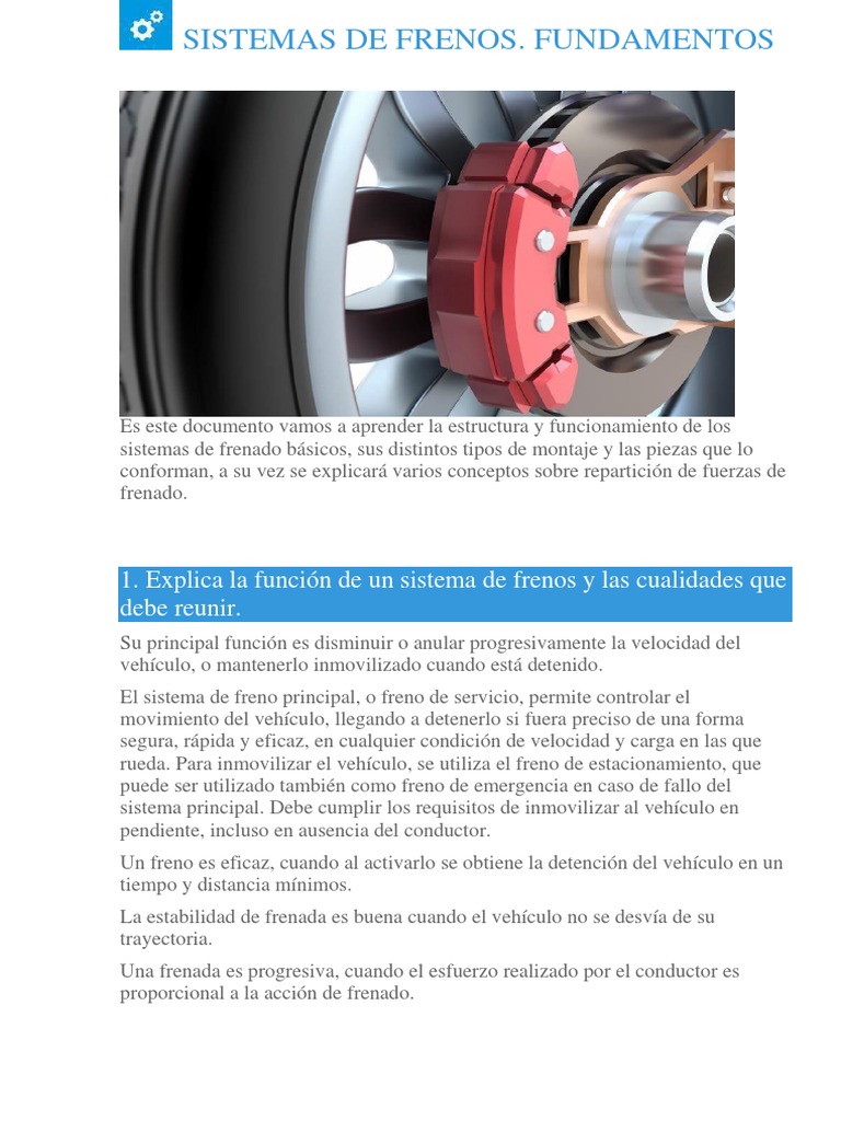 1. Explica la función de un sistema de frenos y las cualidades que