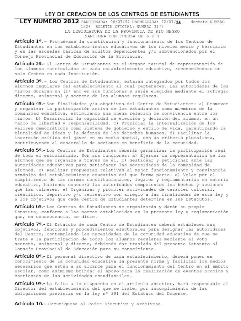 LEY NUMERO 2812 SANCIONADA: 08/07/94 PROMULGADA: 22/07/94 - decreto NUMERO