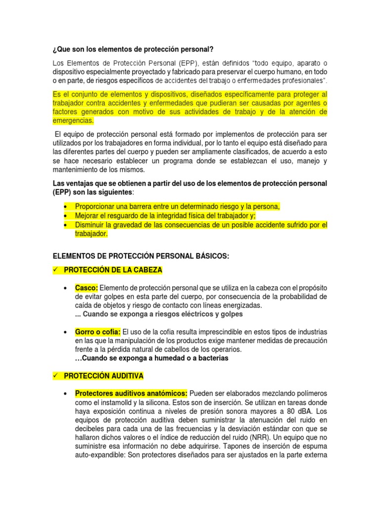 Los Elementos de Protección Personal (EPP), están definidos “todo equipo, aparato o