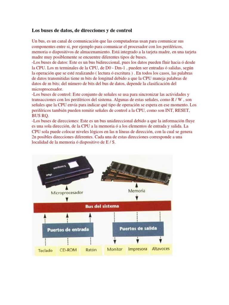Los buses de datos, de direcciones y de control