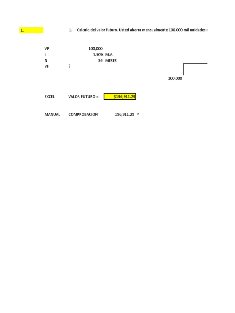 1. 1. Calculo del valor futuro. Usted ahorra mensualmente 100.