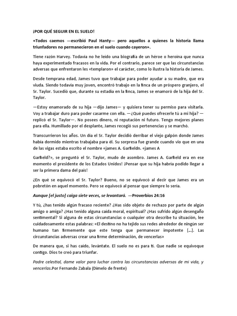 De manera que, si has caído, levántate. El suelo no es para ti. Que nadie se equivoque
