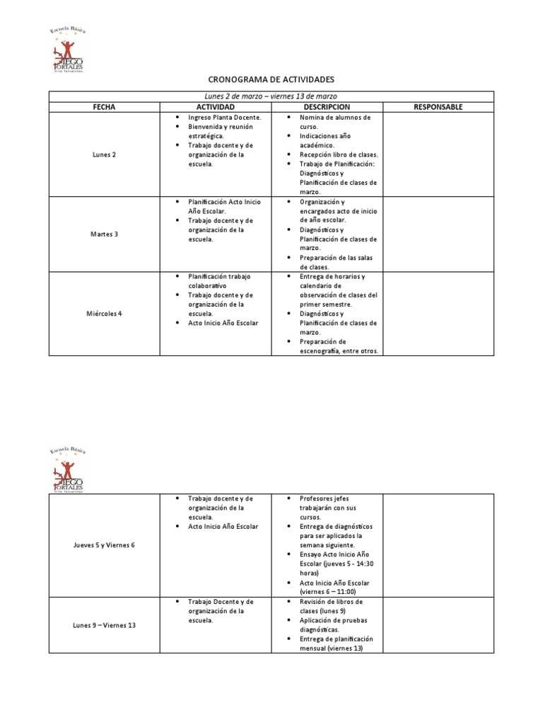 Acto Inicio Año Escolar Planificación de clases de