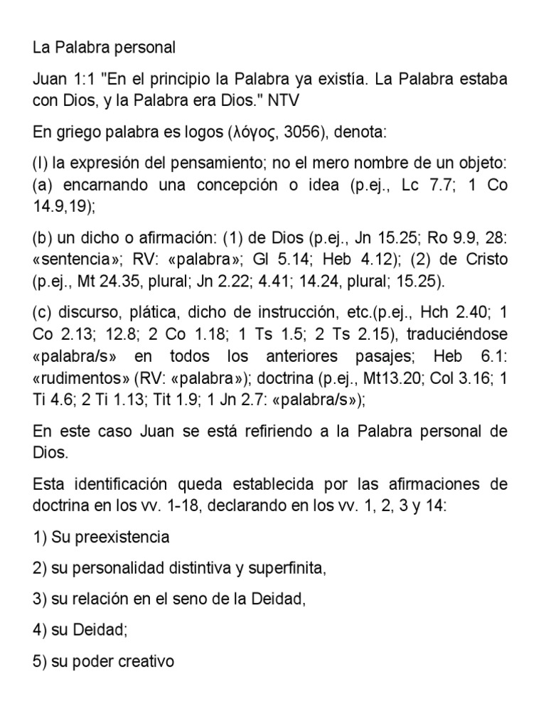 1. La preexistencia de la Palabra personal