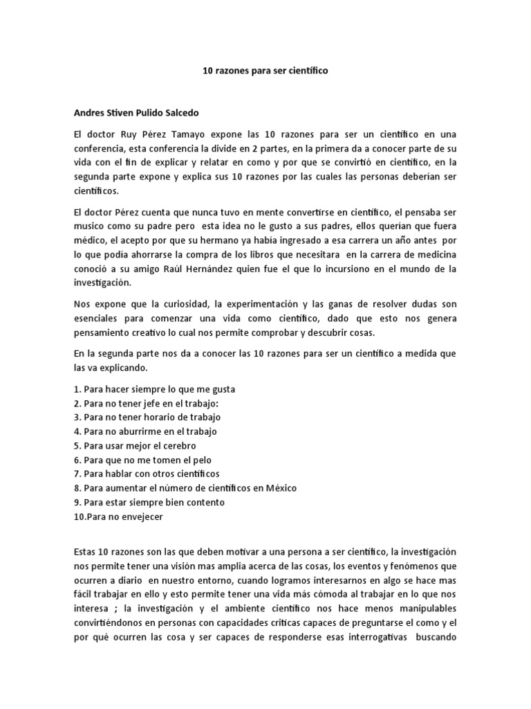 En la segunda parte nos da a conocer las 10 razones para ser un científico a medida que