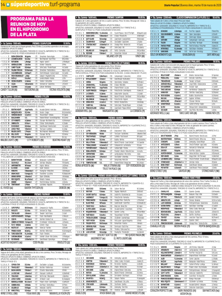 14 n súperdeportivo turf-programa Diario Popular | Buenos Aires, martes 10 de marzo de 2020
