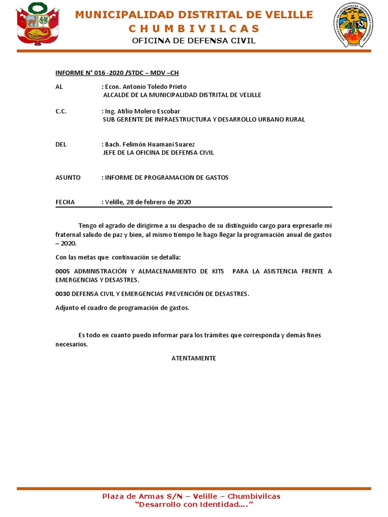 INFORME N° 016 -2020 /STDC – MDV –CH