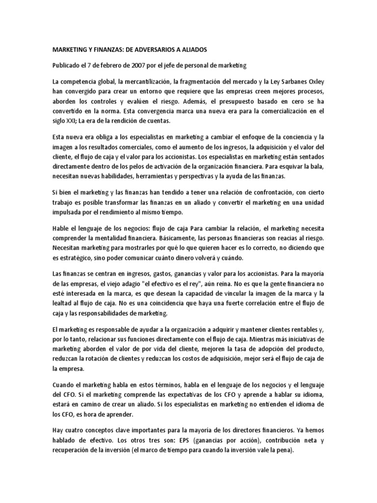 MARKETING Y FINANZAS: DE ADVERSARIOS A ALIADOS