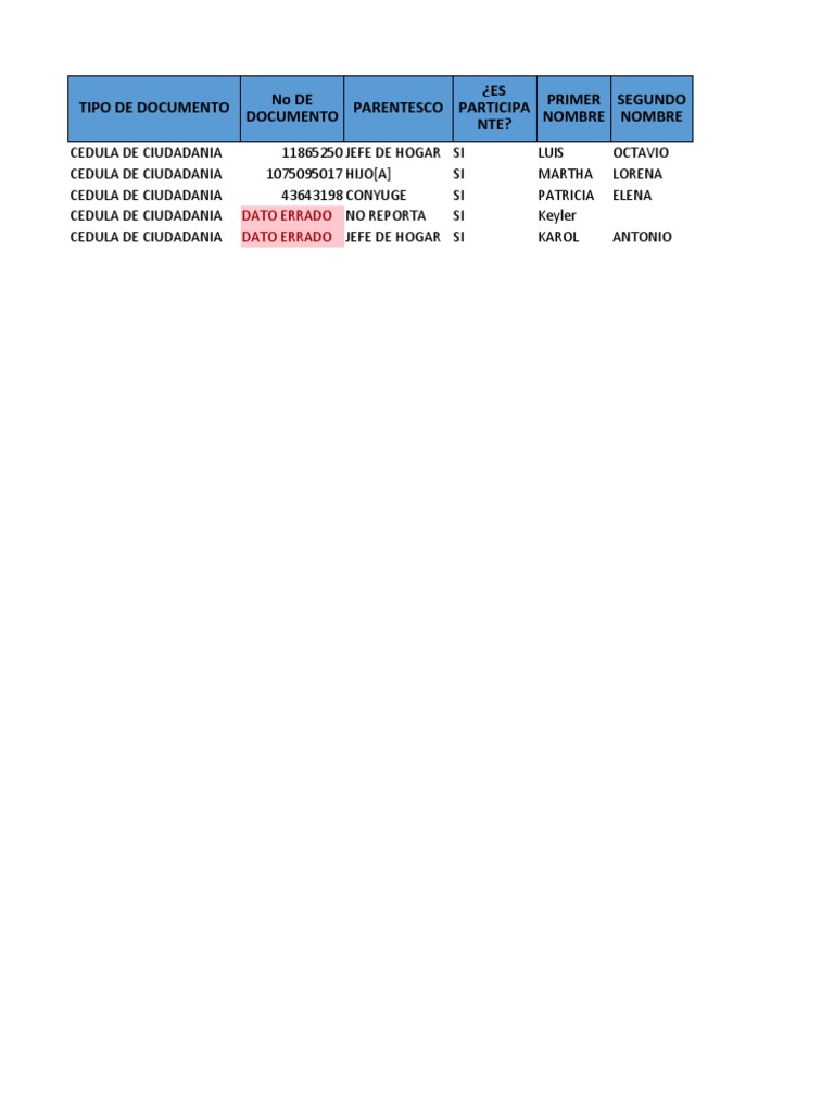 CEDULA DE CIUDADANIA DATO ERRADO JEFE DE HOGAR SI KAROL ANTONIO