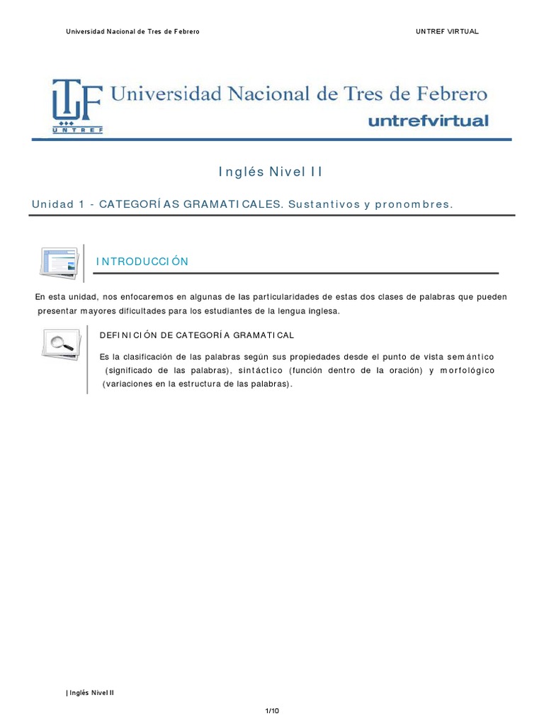 Unidad 1 - CATEGORÍAS GRAMATICALES. Sustantivos y pronombres.