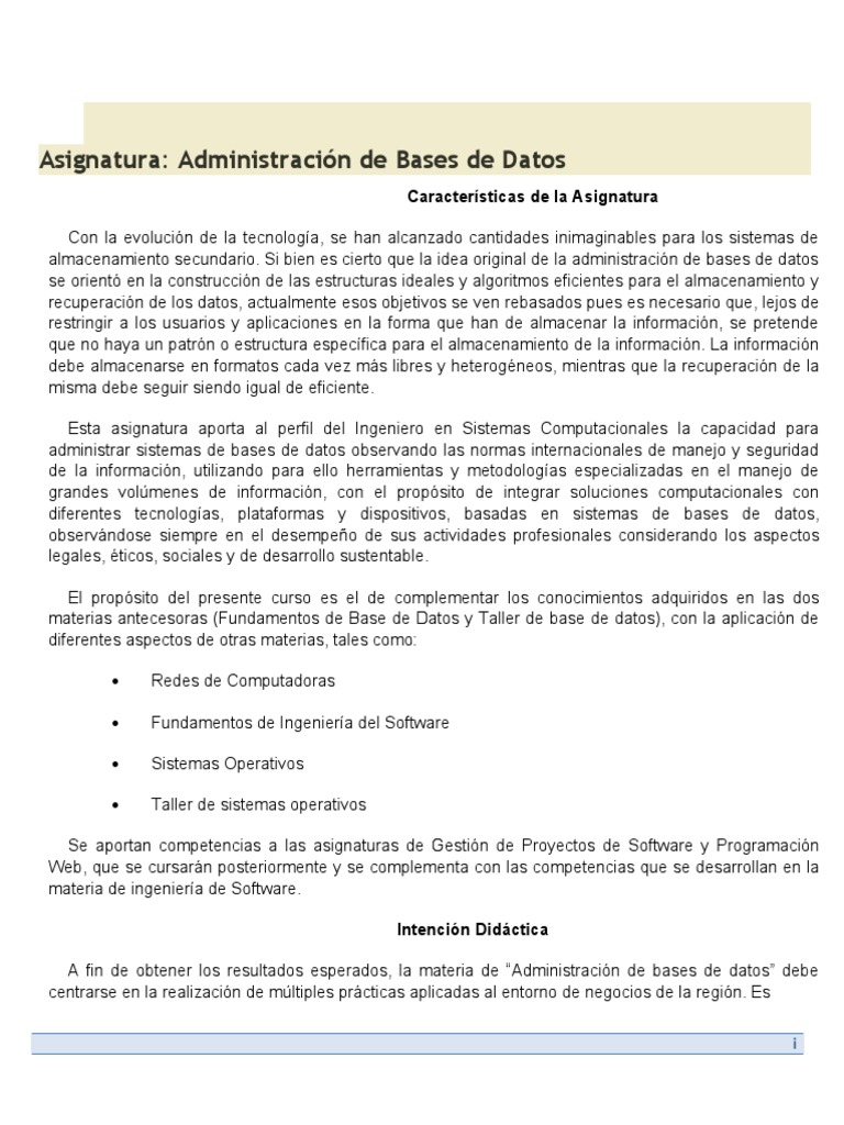 A fin de obtener los resultados esperados, la materia de “Administración de bases de datos” debe