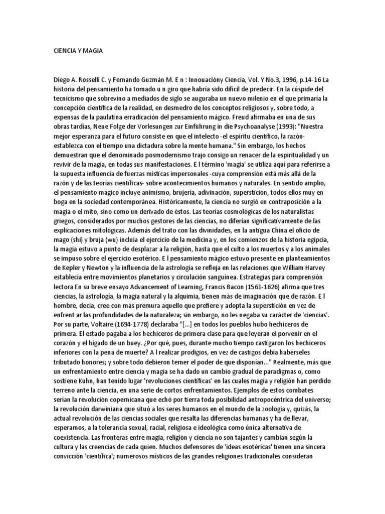 siglo que se ocupó de la relación entre magia y ciencia, afirmaba en su libro Magic, Science and