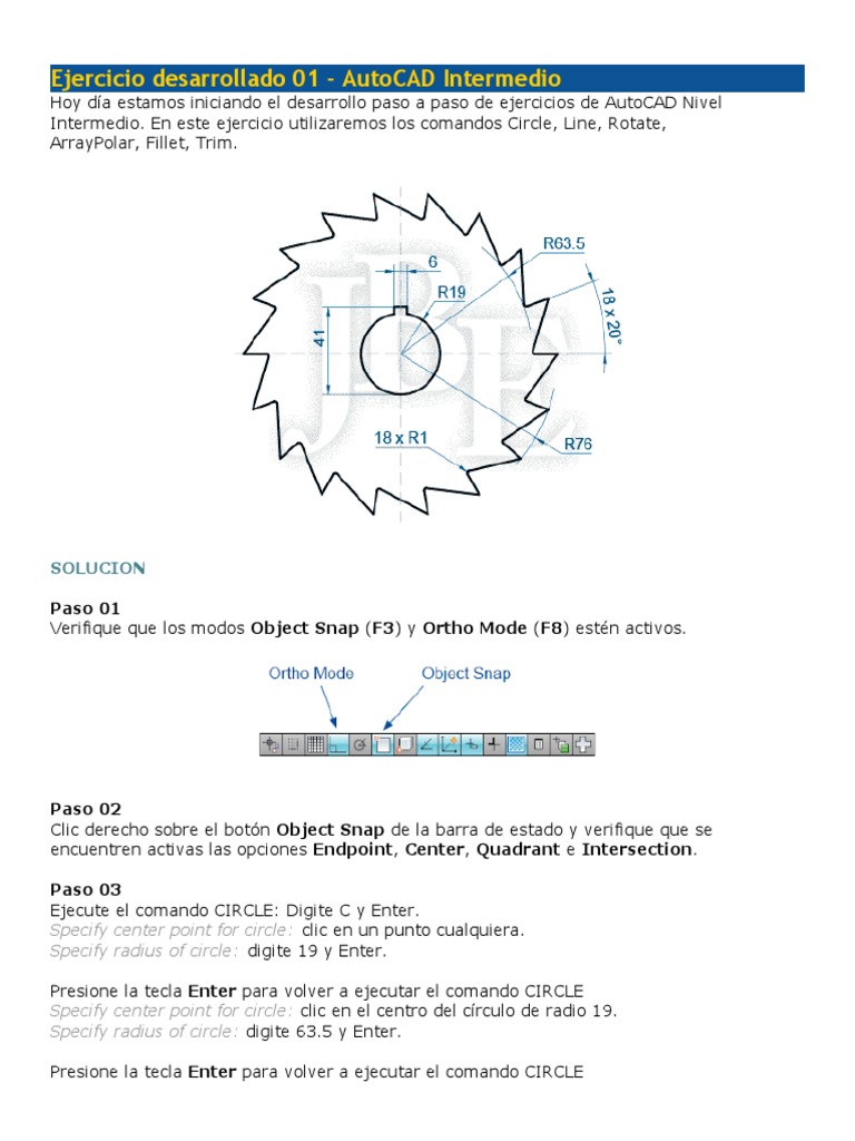 Intermedio. En este ejercicio utilizaremos los comandos Circle, Line, Rotate,