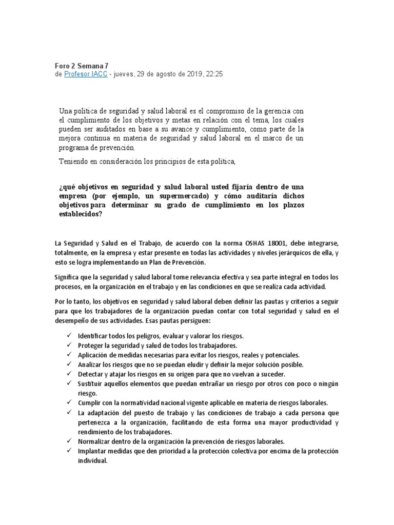 ¿qué objetivos en seguridad y salud laboral usted fijaría dentro de una