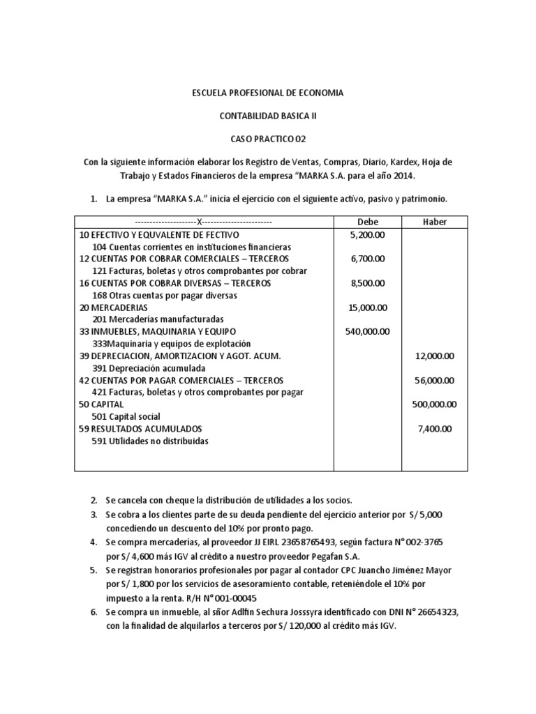1. La empresa “MARKA S.A.” inicia el ejercicio con el siguiente activo, pasivo y patrimonio.