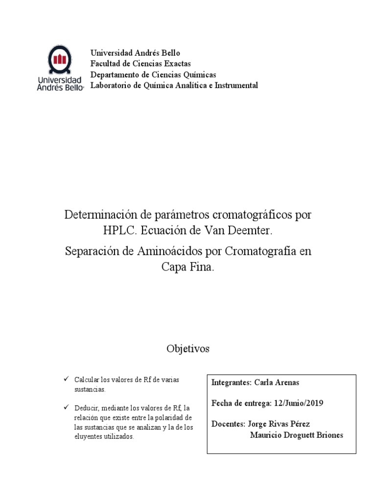 Calcular los valores de Rf de varias Integrantes: Carla Arenas