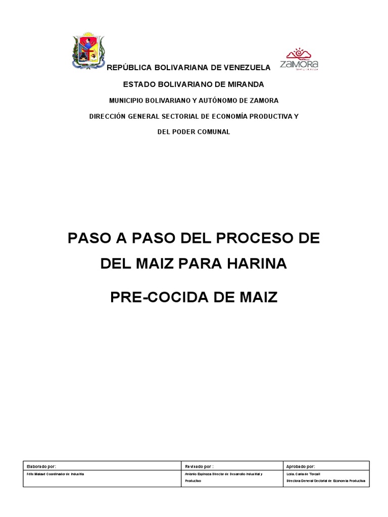 Capacidad y Proceso de Realización del Maíz a la Harina Pre-cocida.