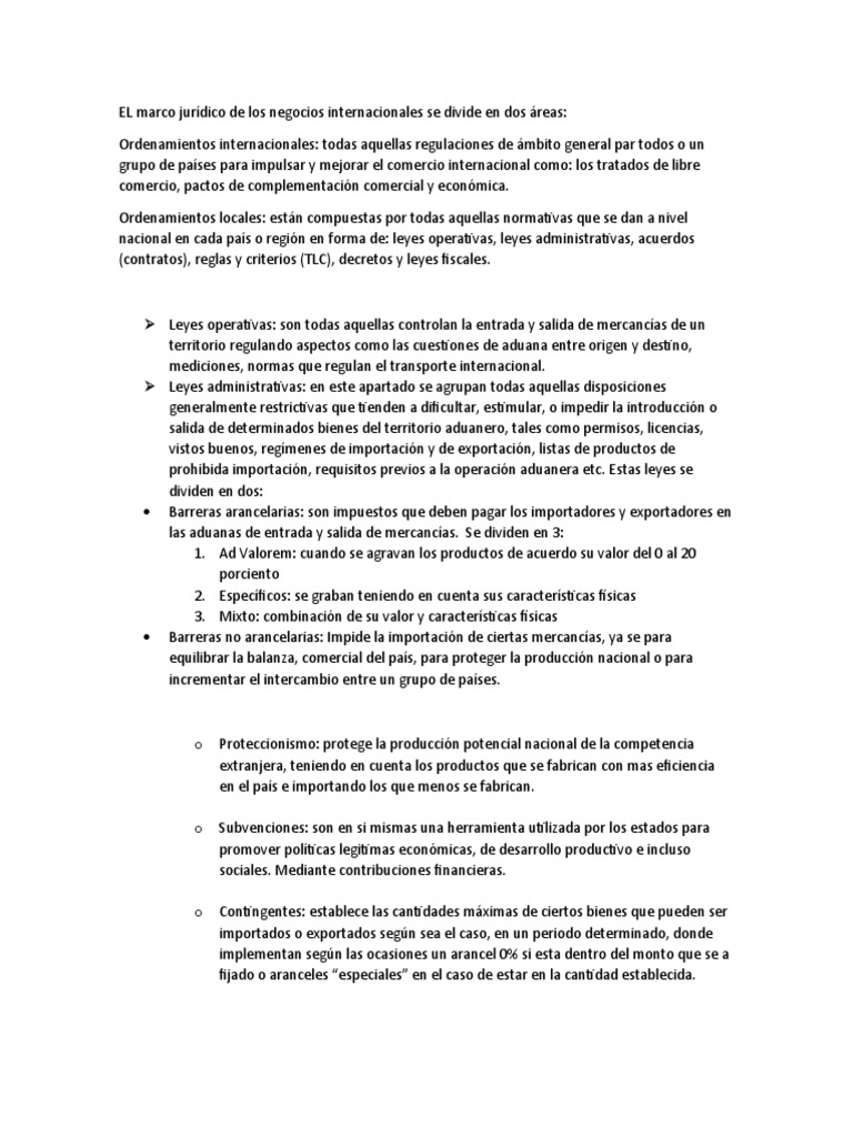 EL marco jurídico de los negocios internacionales se divide en dos áreas: