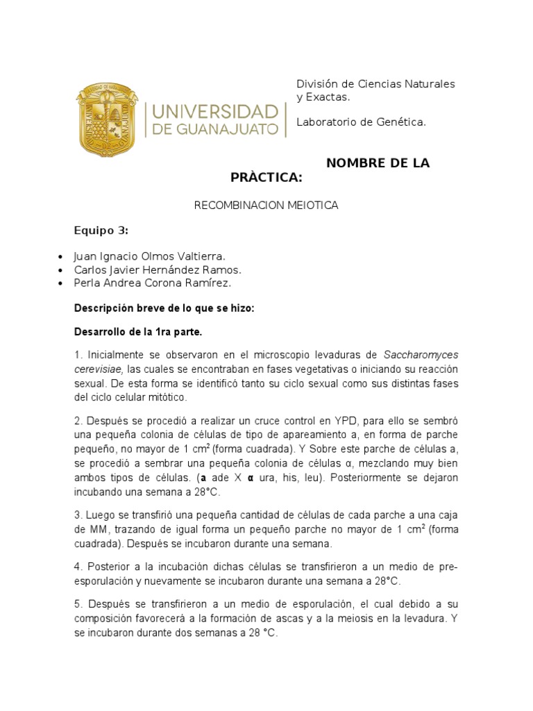 segregación y recombinación meiótica de Saccharomyces cerevisiae.