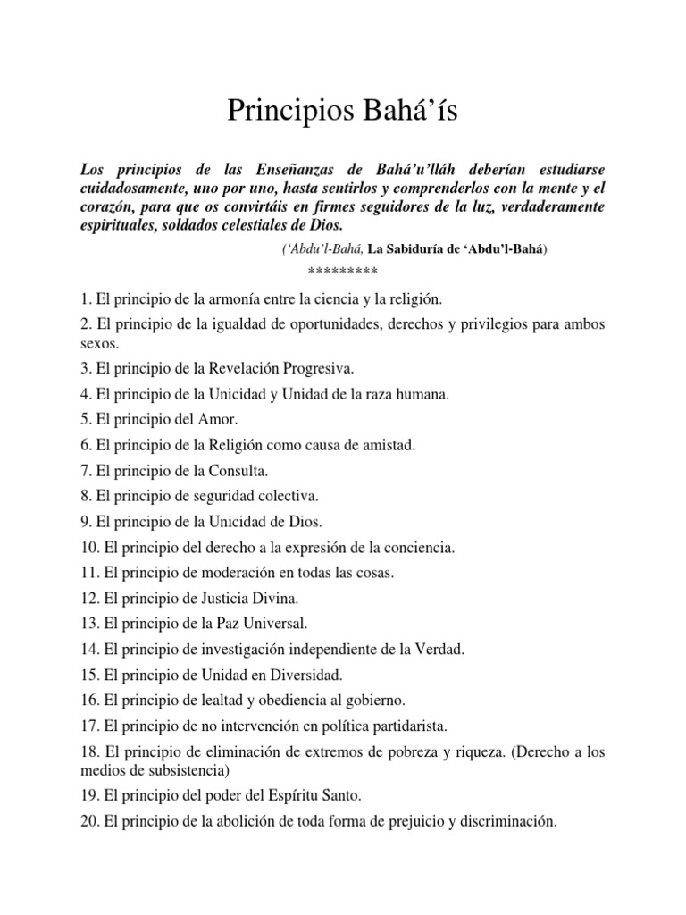 Los principios de las Enseñanzas de Bahá’u’lláh deberían estudiarse