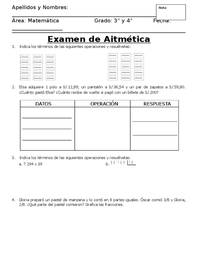 3. Indica los términos de las siguientes operaciones y resuélvelas: