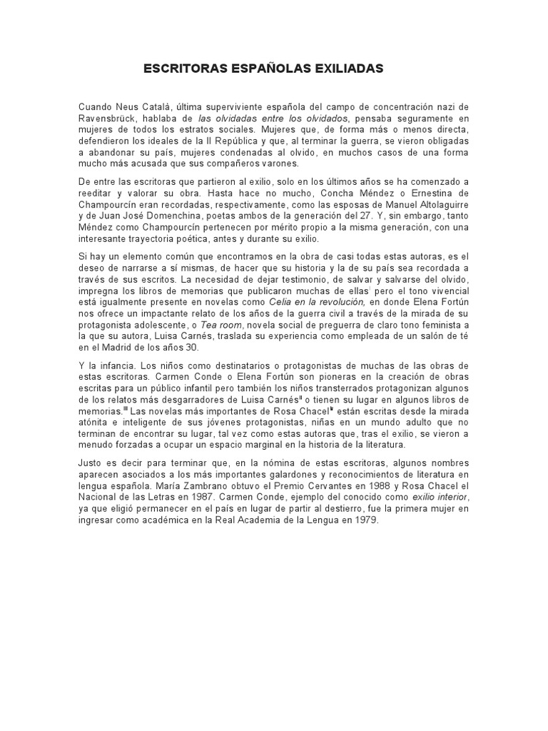 terminan de encontrar su lugar, tal vez como estas autoras que, tras el exilio, se vieron a